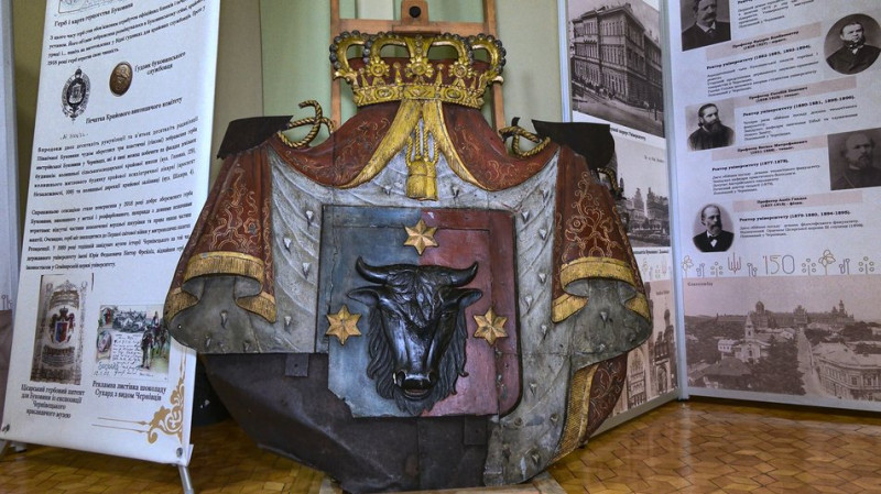 У Чернівецькому національному університеті представили віднайдені та відреставровані речі, які пов'язані з історією закладу. Серед них — золотий ланцюг ректора, який вважали втраченим, та віднайдений герб Буковини.