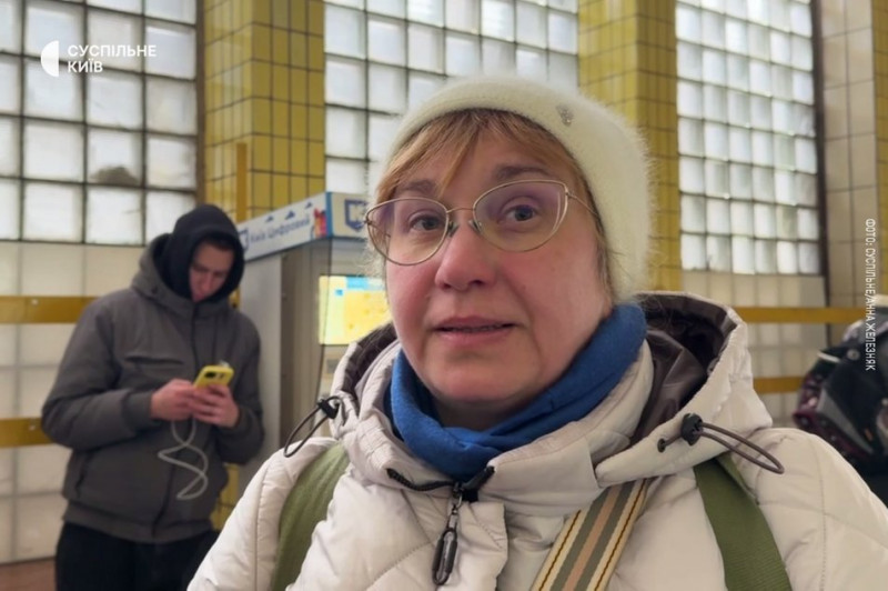 Киянка Світлана чекає, доки запрацює метрополітен, 31 січня 2026 року. Суспільне Новини/Анна ЖелезнякЗ опаленням і водою теж є проблеми, додала містянка: "У нас немає води. Зараз отоплення трошки включили, два дня як. Сьогодні трошки гріє, зараз, як я уходила, то, може, і відключилося".